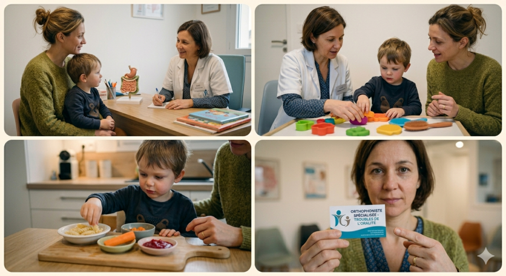 Une orthophoniste spécialisée dans les troubles de l’oralité est souvent la professionnelle la plus adaptée pour évaluer la situation.